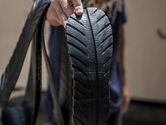 Hemos desarrollado una tecnología “única” para reutilizar los neumáticos para reutilizar los neumáticos de una manera innovadora y sin recurrir a procesos químicos, térmicos o triturados. De cada banda de neumáticos se pueden extraer de 6 a 8 suelas, o lo que es lo mismo, se pueden fabricar de 3 a 4 pares de cualquier tipo de calzado. El material sobrante de las bandas de rodadura regresa a la cadena industrial para su reciclaje en un proceso que no solo reduce la cantidad de residuos que terminan en vertederos, sino que también proporciona una oportunidad para aplicaciones innovadoras y sostenibles del caucho reciclado. El objetivo final de Tiresoul con RMD es difundir las prácticas sostenibles dentro de la industria de la moda.